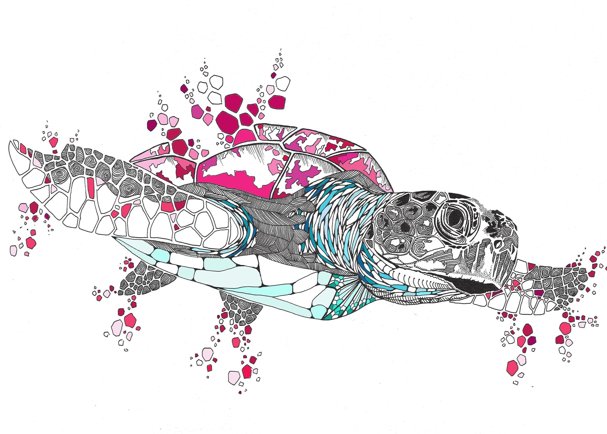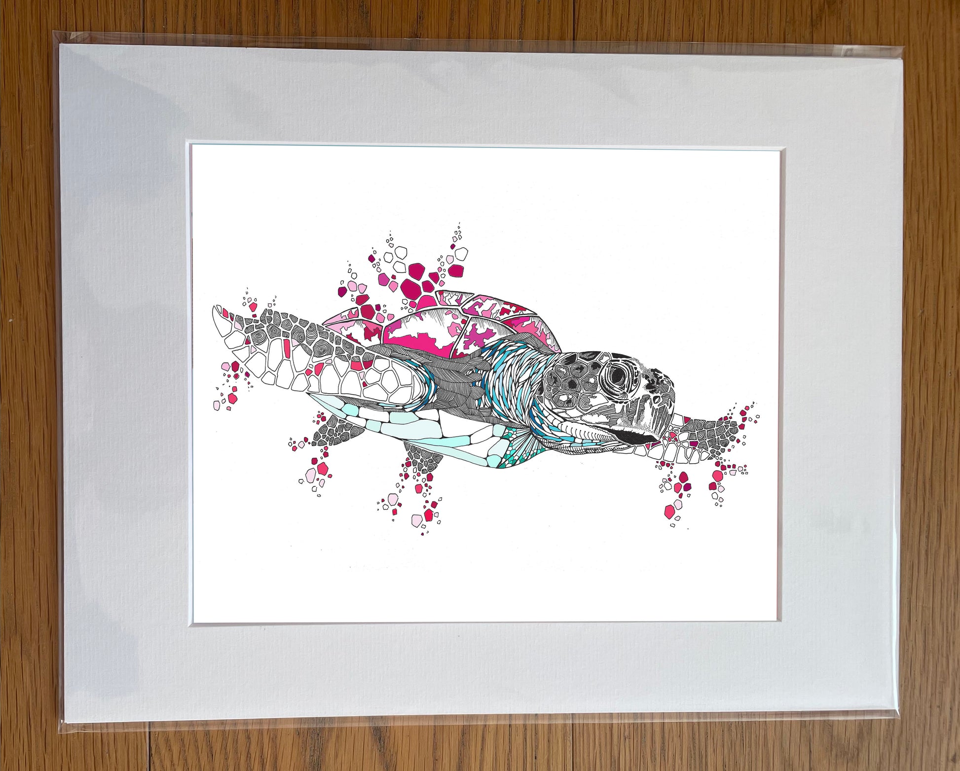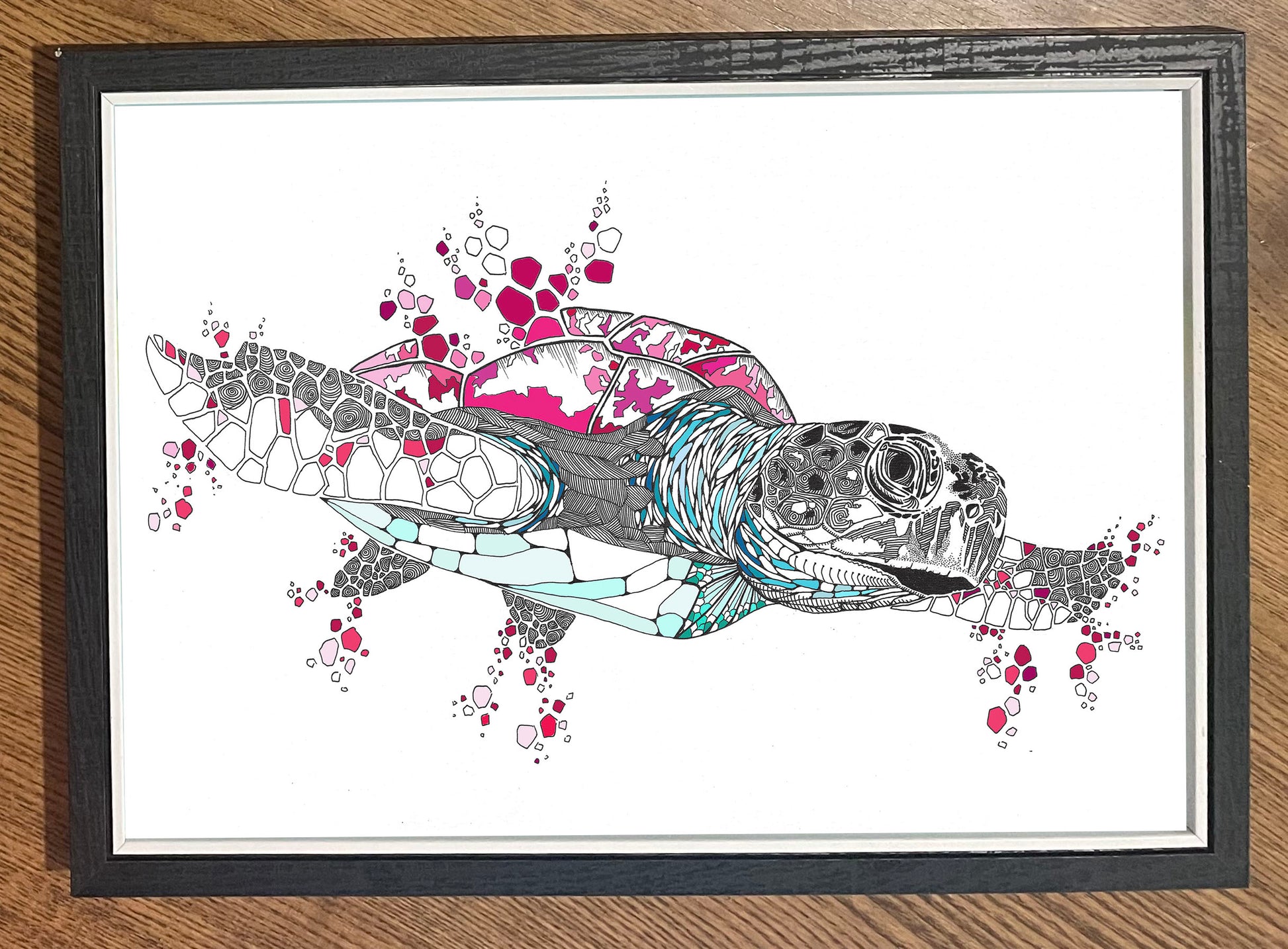 Turtle print. Delivered in a protective plastic sleeve with a sturdy backing board, and printed locally to Lincoln. Original artwork created with paper collage.